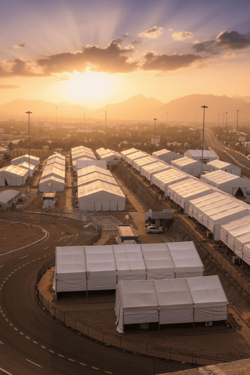 تجهيز كامل يشمل الخيام، التكييف، الكهرباء، الإضاءة، ودورات المياه.